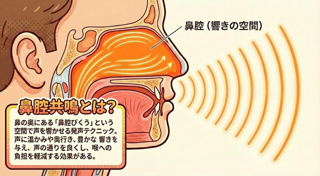 通る声、響く声を手に入れるために不可欠なのが「鼻腔共鳴びくうきょうめい」です。