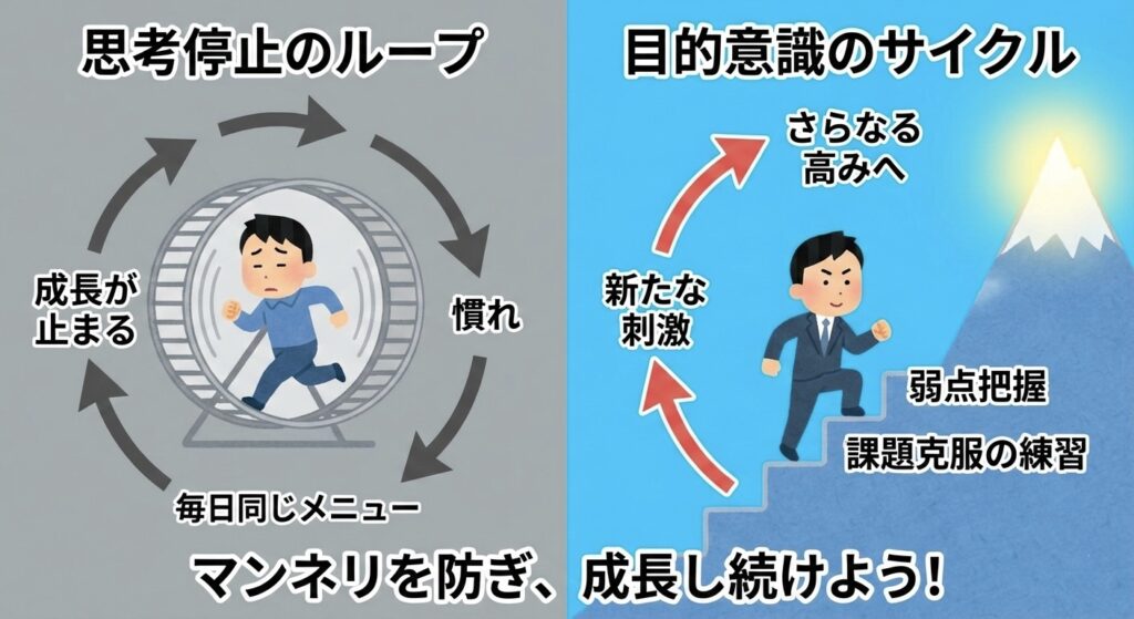 常に目的意識を持って練習に取り組む姿勢が、停滞期を乗り越え、さらなる高みへとあなたを導いてくれるでしょう。